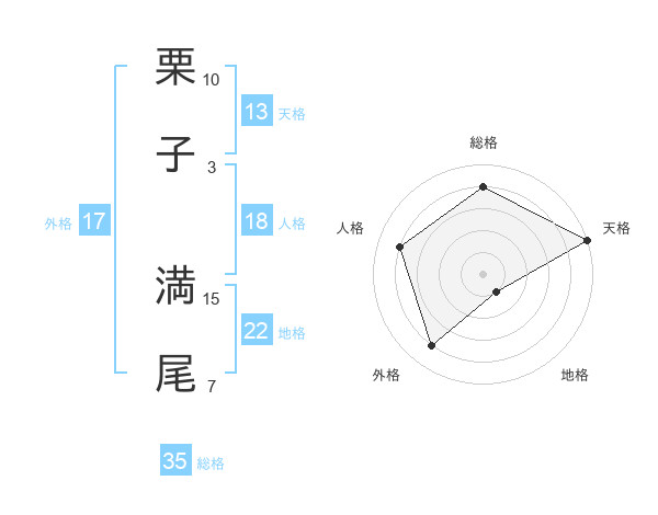 栗子 満尾さんの天格は13画の5点!