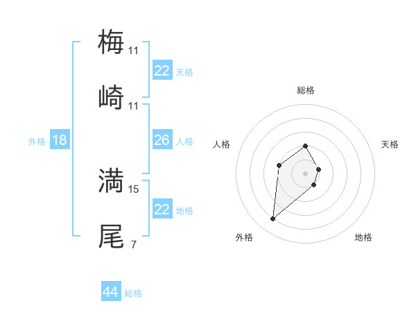 梅崎 満尾さんを姓名の画数から五運を鑑定