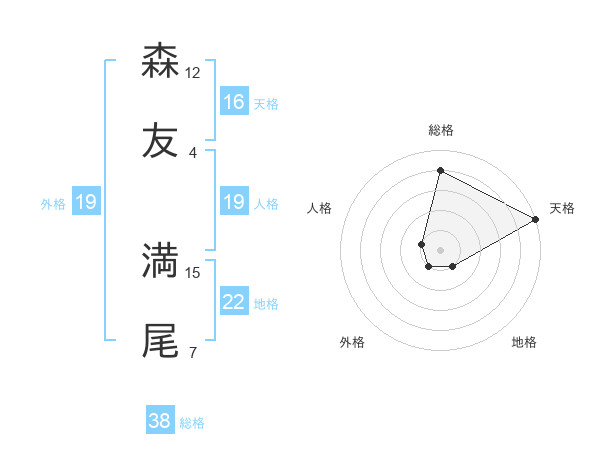 森友 満尾さんの総格は38画の4点!