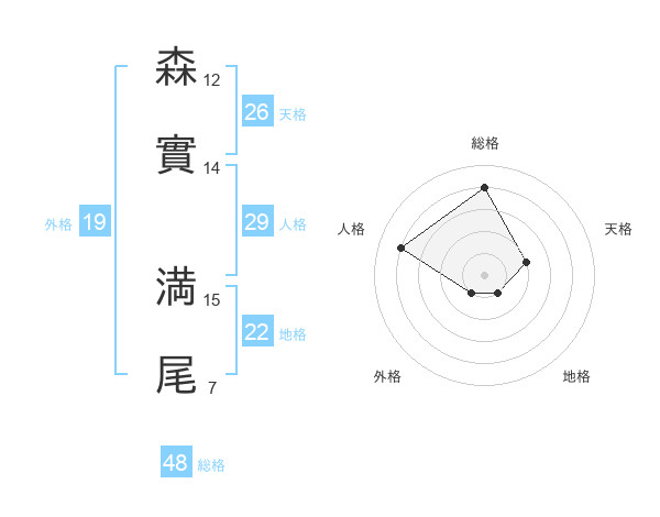 森實 満尾さんの総格は48画の4点!