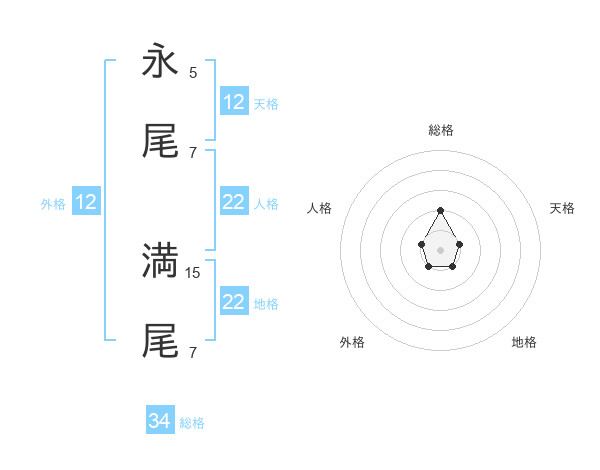 永尾 満尾さんを姓名の画数から五運を鑑定