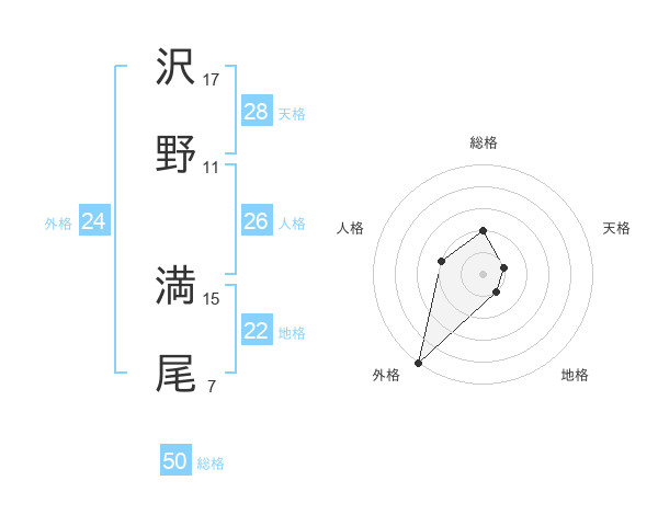 沢野 満尾さんを姓名の画数から五運を鑑定