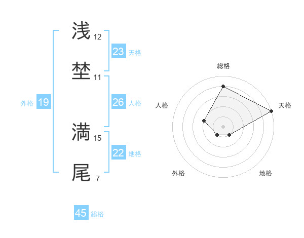 浅埜 満尾さんの総格は45画の4点!