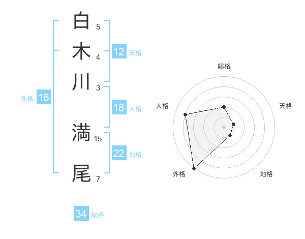 白木川 満尾さんの総格は34画の2点!