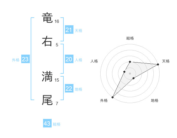 竜右 満尾さんの天格は21画の5点!