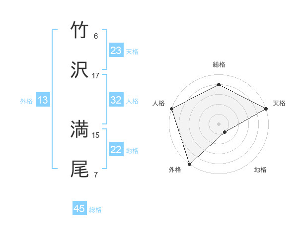 竹沢 満尾さんの総格は45画の4点!