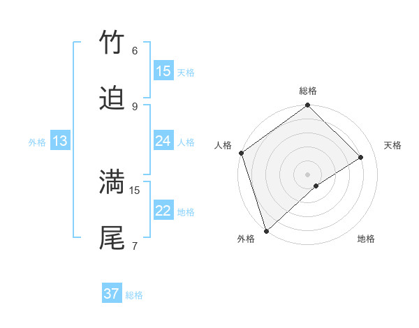竹迫 満尾さんの総格は37画の5点!