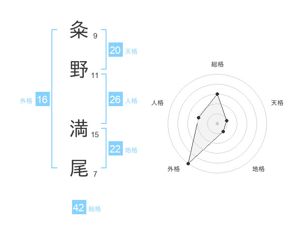粂野 満尾さんを姓名の画数から五運を鑑定