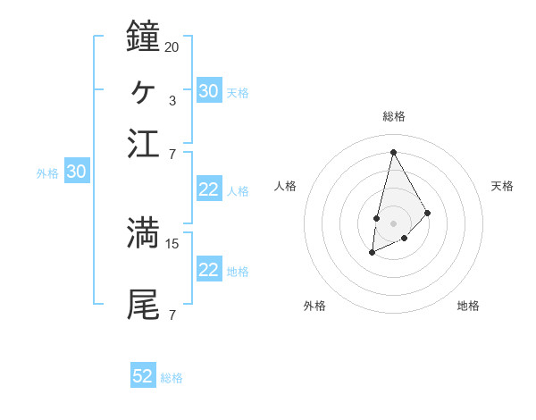 鐘ヶ江 満尾さんの総格は52画の4点!