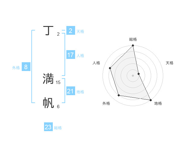 丁 満帆さんの総格は23画の5点!