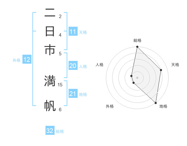 二日市 満帆さんを姓名の画数から五運を鑑定