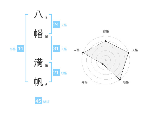 八幡 満帆さんの総格は45画の4点!
