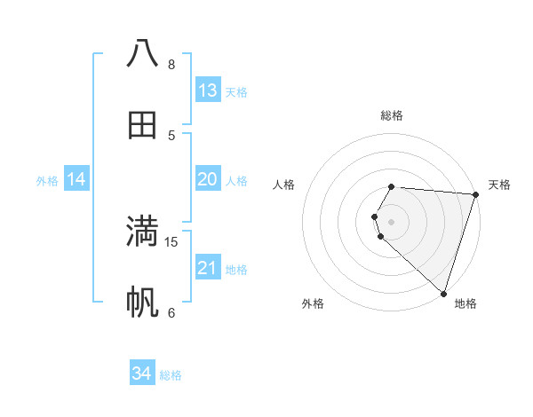 八田 満帆さんの天格は13画の5点!