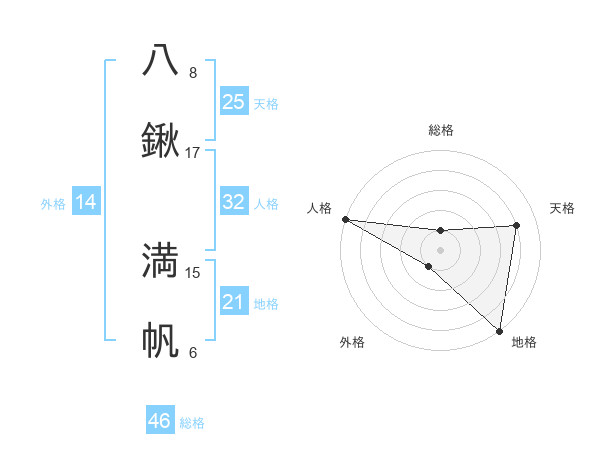 八鍬 満帆さんを姓名の画数から五運を鑑定