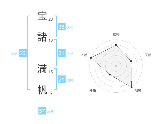 宝諸 満帆さんの総格は57画の4点!
