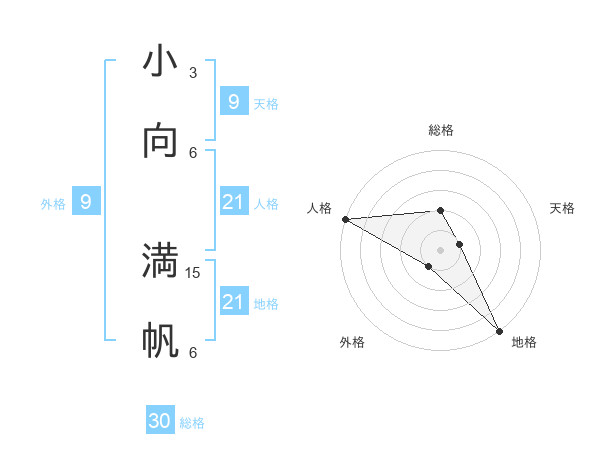 小向 満帆さんの総格は30画の2点!