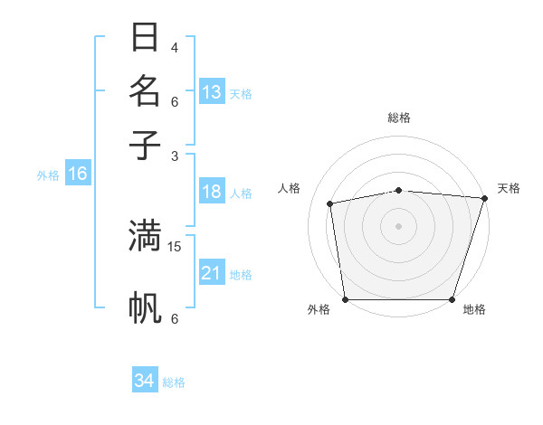 日名子 満帆さんを姓名の画数から五運を鑑定