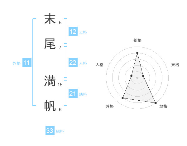 末尾 満帆さんを姓名の画数から五運を鑑定