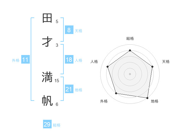 田才 満帆さんの総格は29画の4点!