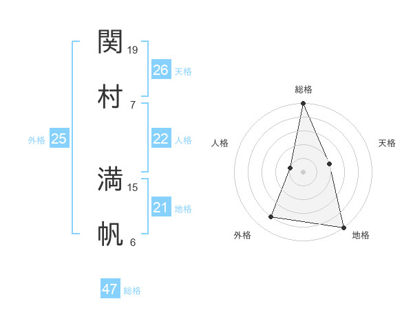 関村 満帆さんの総格は47画の5点!