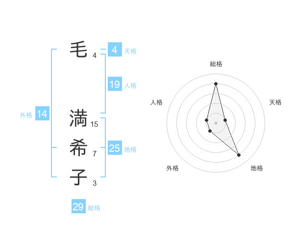 毛 満希子さんの総格は29画の4点!