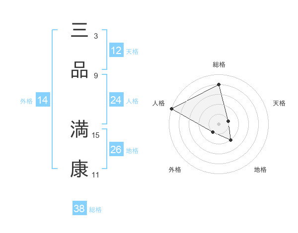 三品 満康さんの総格は38画の4点!