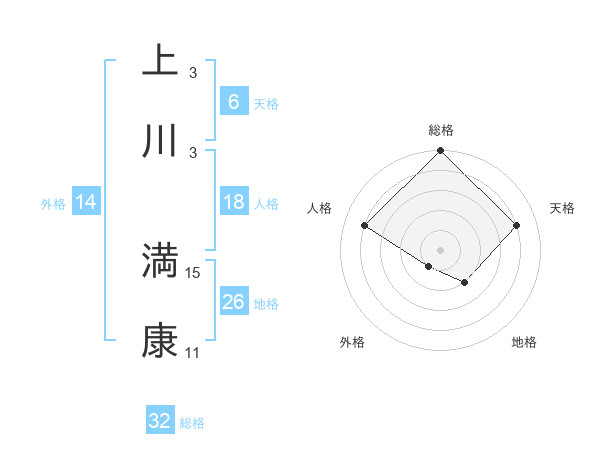 上川 満康さんの総格は32画の5点!