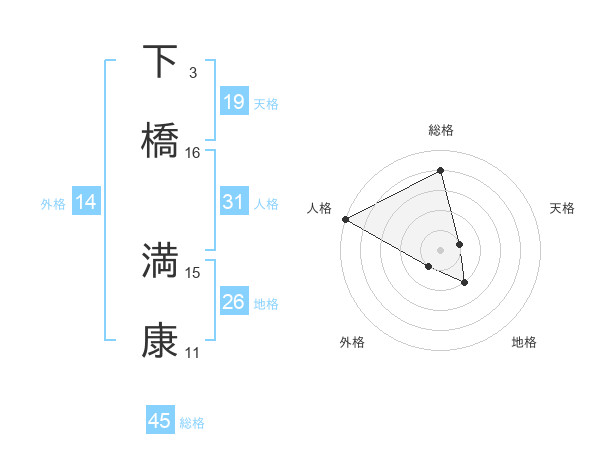 下橋 満康さんの総格は45画の4点!
