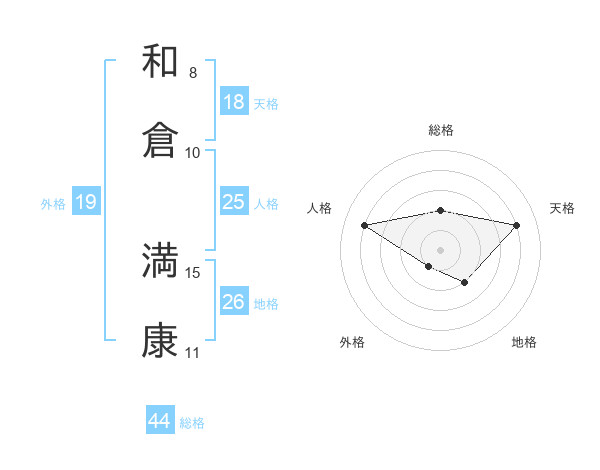 和倉 満康さんの総格は44画の2点!
