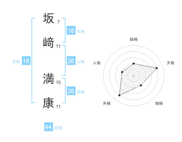 坂﨑 満康さんの総格は44画の2点!