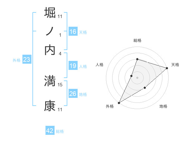 堀ノ内 満康さんの総格は42画の3点!