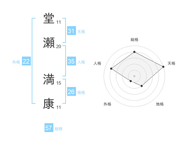 堂瀬 満康さんの総格は57画の4点!