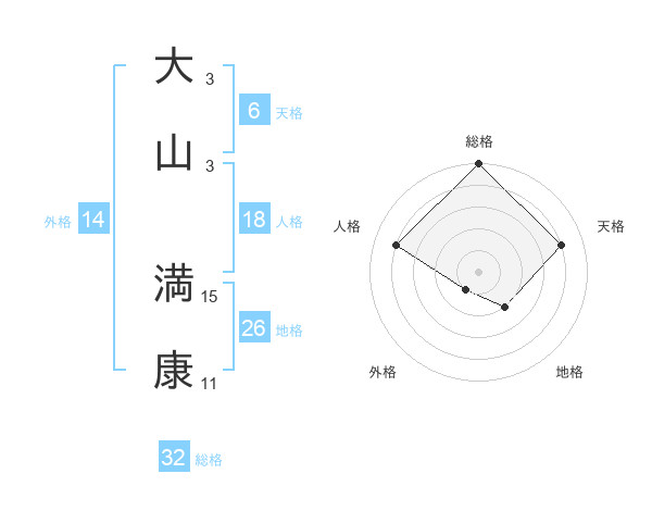 大山 満康さんの総格は32画の5点!