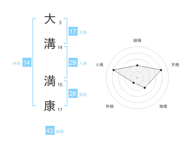 大溝 満康さんの天格は17画の4点!