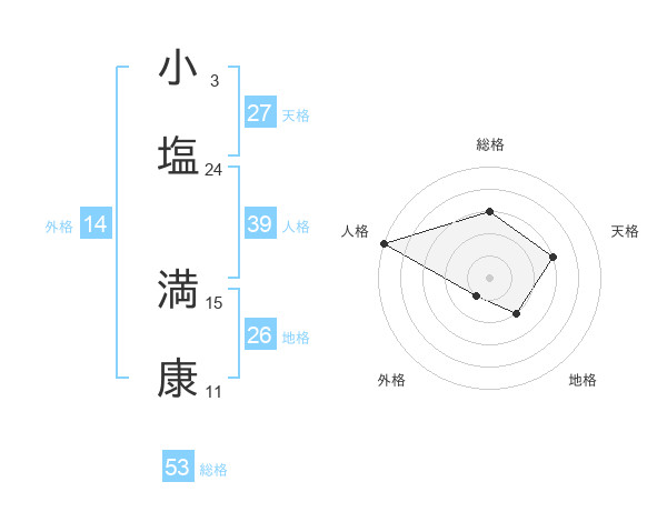 小塩 満康さんの天格は27画の3点!