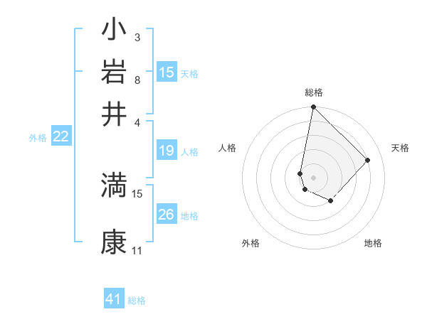 小岩井 満康さんの天格は15画の4点!