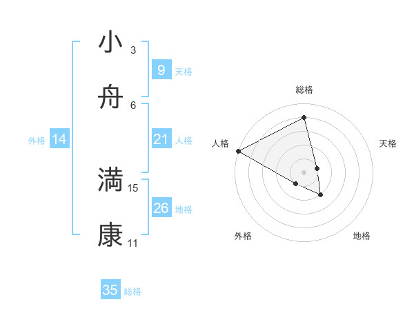 小舟 満康さんの総格は35画の4点