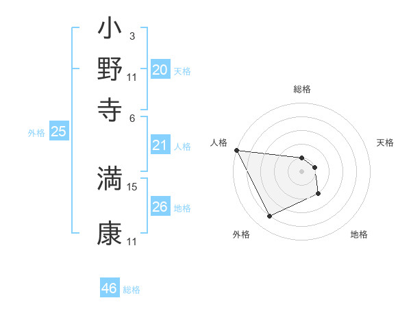 小野寺 満康さんを姓名の画数から五運を鑑定