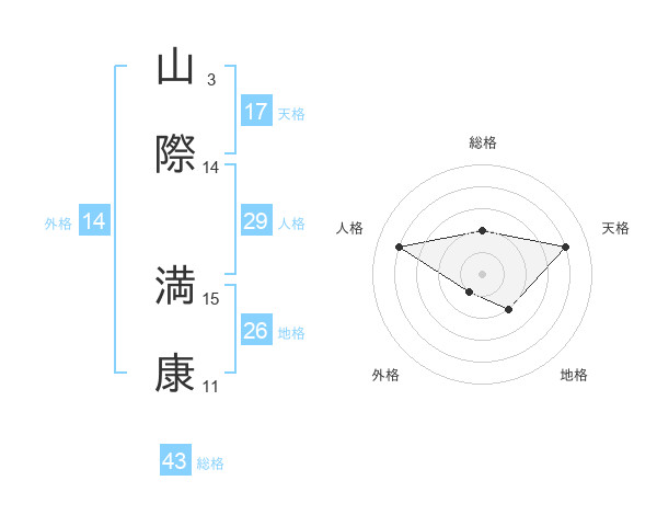 山際 満康さんの天格は17画の4点!