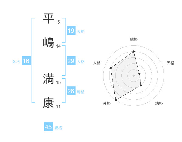 平嶋 満康さんを姓名の画数から五運を鑑定