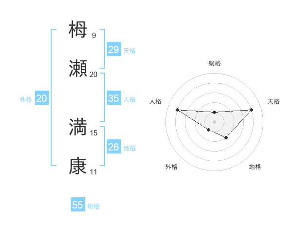 栂瀬 満康さんの天格は29画の4点!