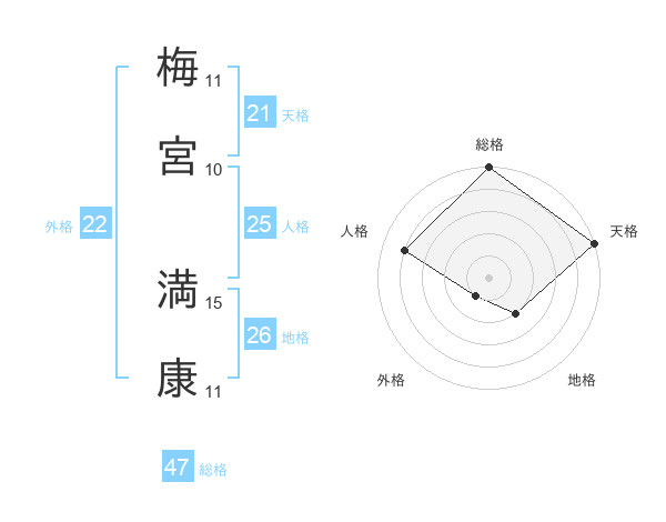 梅宮 満康さんを姓名の画数から五運を鑑定