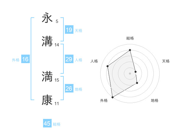 永溝 満康さんの総格は45画の4点!