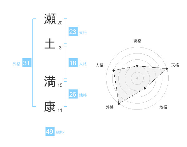 瀬土 満康さんの天格は23画の5点!