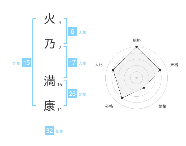火乃 満康さんの総格は32画の5点!