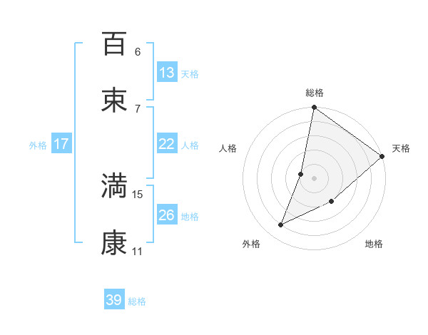 百束 満康さんの総格は39画の5点!