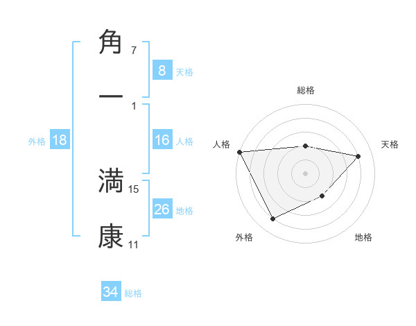 角一 満康さんの総格は34画の2点!