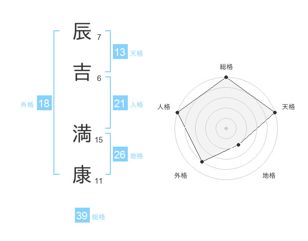 辰吉 満康さんの総格は39画の5点!