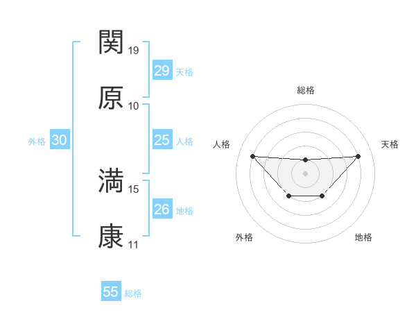 関原 満康さんの天格は29画の4点!