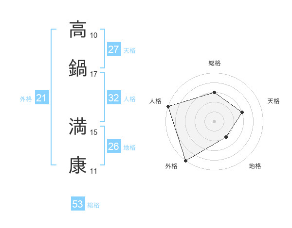 高鍋 満康さんを姓名の画数から五運を鑑定